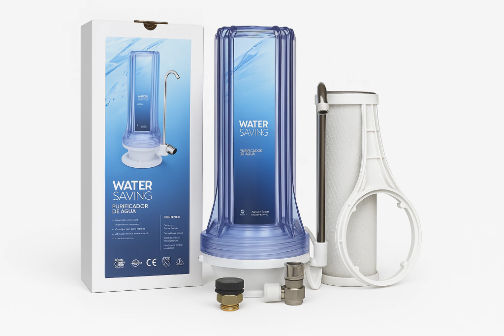 El purificador de agua sobremesada Water Saving es una solución compacta, estética y eficiente para mejorar la calidad del agua potable directamente desde tu cocina, sin necesidad de instalaciones complicadas ni perforaciones.